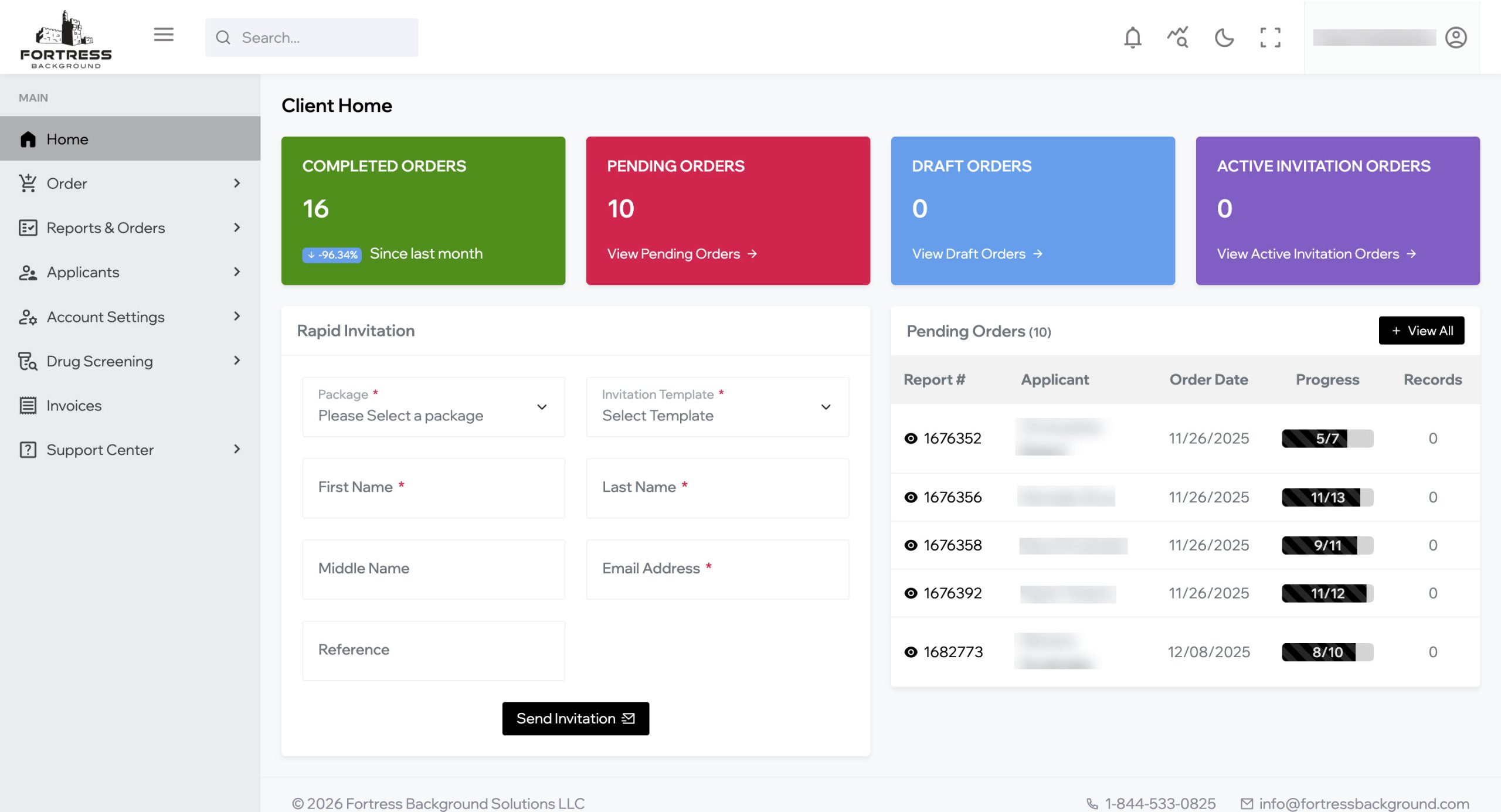 Login, select your package and enter the applicant's info. This can be done by you or by the applicant.